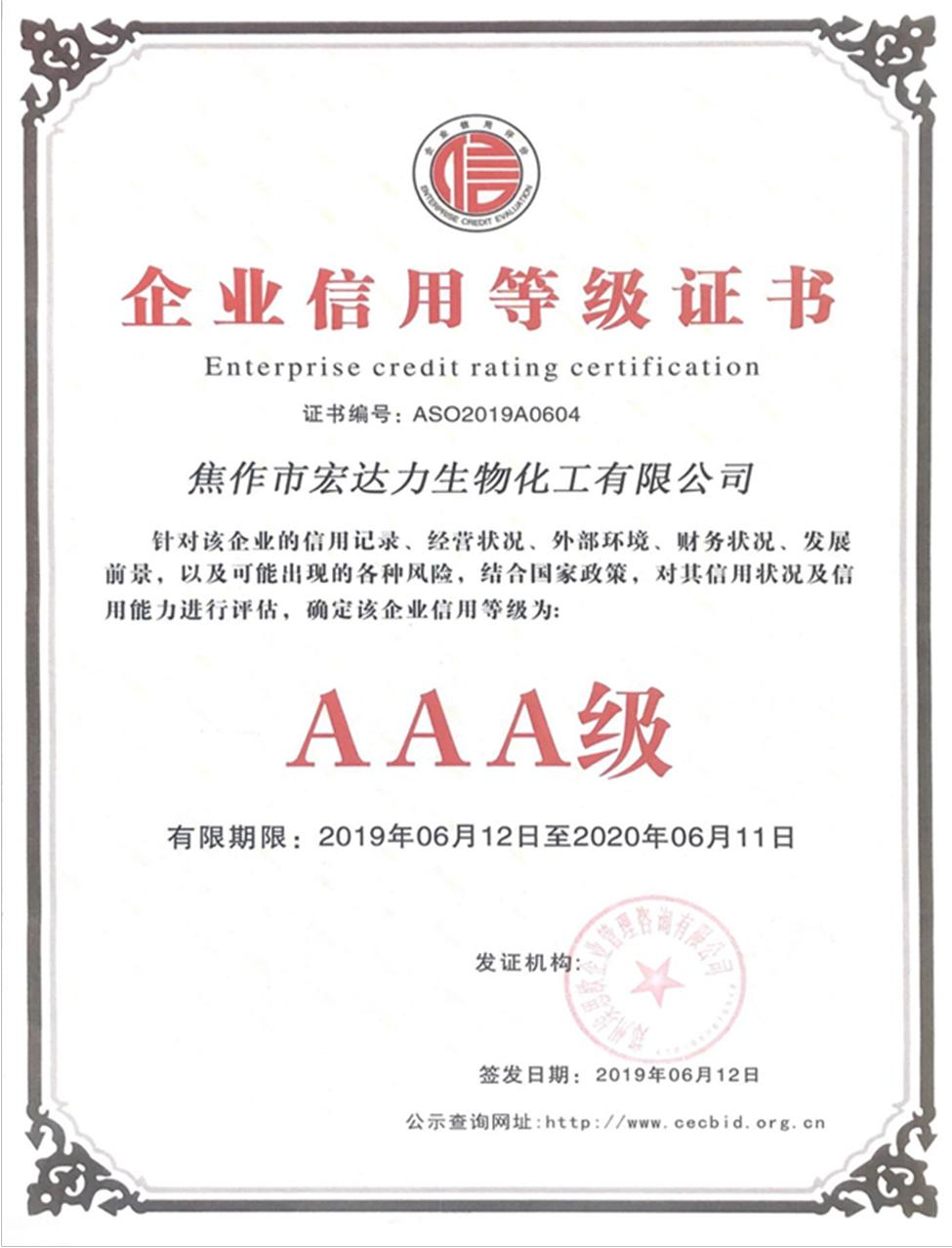 企業(yè)信用等級(jí)證書(shū)